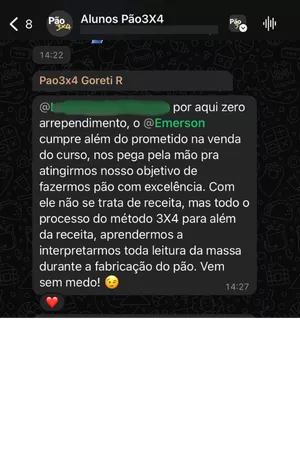 Comprei esse curso há 3 meses. Hoje completo a minha renda com pães que aprendi a fazer no curso. Compraria mais dez vezes! Emerson é um grande professor e um ótimo padeiro! Pode comprar sem medo!